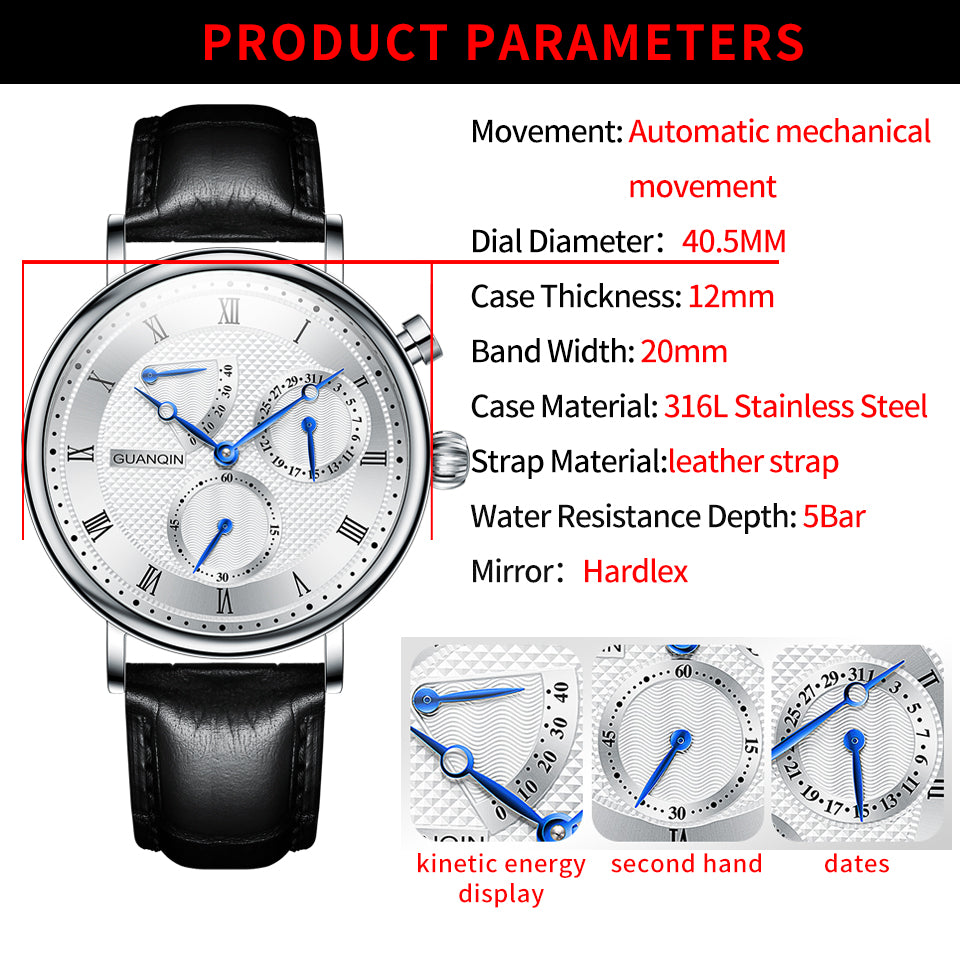 GuanQin GJ16273 fully automatic mechanical watch waterproof fashion tourbillon men's watch
